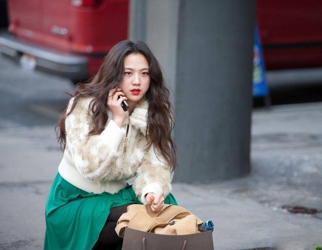 毛茸茸的外套穿在身上不但很保暖,还能够不经意间体现出强大气场,而在下面这一身穿搭中,这件毛茸茸的外套也让汤唯瞬间变成了气质女神。搭配绿色裙装,还有中分的大波浪卷发,整个人看上去很有氛围感。